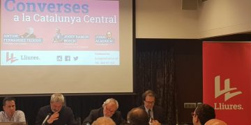 Sociedad Josep Ramon Bosch, Jordi Alberich y Antoni Fernández Teixidó, juntos en un acto en Manresa el 10-A lunes, 8 de abril de 2019
