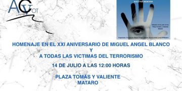 Sociedad El 14 de julio, homenaje en Mataró a Miguel Ángel Blanco y a todas las víctimas del terrorismo viernes, 13 de julio de 2018