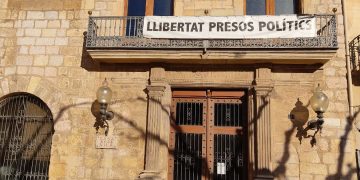 Política El Ayuntamiento de Montblanc (Tarragona) luce propaganda secesionista en la fachada viernes, 15 de enero de 2021