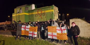 Sociedad La Resistencia reconvierte lazos amarillos en rojigualdas en la estación de AVE de Tarragona lunes, 30 de abril de 2018