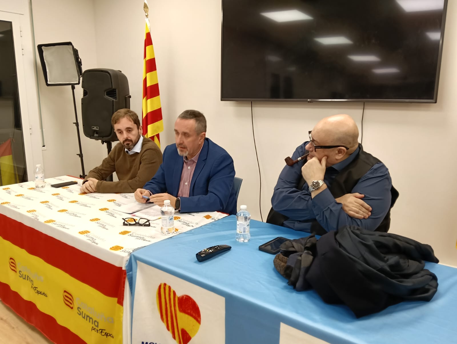 Pau Guix, Miquel Giménez y Ángel Escolano decidieron felicitar las fiestas a ‘su’ manera, en un interesante acto celebrado en la sede de Cataluña Suma por España en el que repasaron como está esta Cataluña nuestra tan maltratada por el separatismo. Y lo hicieron ante un auditorio entregado que llenó la sala, que al finalizar el acto brindó por unas felices fiestas.