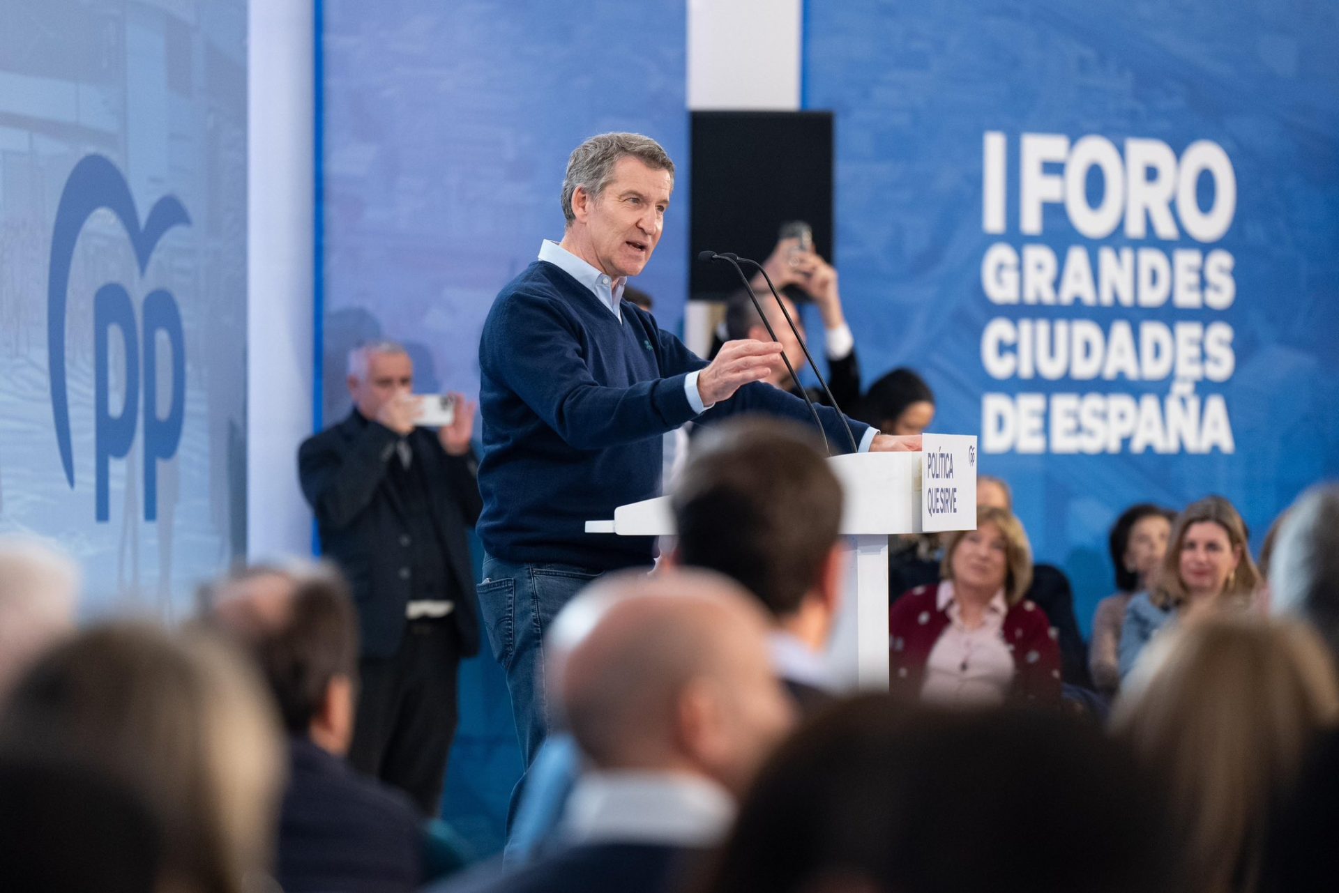 El presidente del Partido Popular, Alberto Núñez Feijóo, ha clausurado, junto al presidente del PP de Aragón, Jorge Azcón, el I Foro de Grandes Ciudades, que se ha celebrado este fin de semana en Zaragoza.