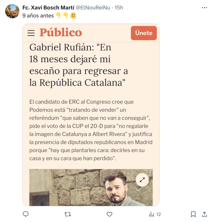 Gabriel Rufián vive a cuerpo de Rey en la capital de España e incluso muy de vez en cuando le dan un premio. Sí, como lo leen, la asociación de periodistas parlamentarios lo ha galardonado como mejor orador del Congreso de los Diputados en 2024. En elCatalán.es somos incapaces de verle los méritos, pero respetamos la opinión de los compañeros que siguen la actualidad política en la Cámara Baja, faltaría más.