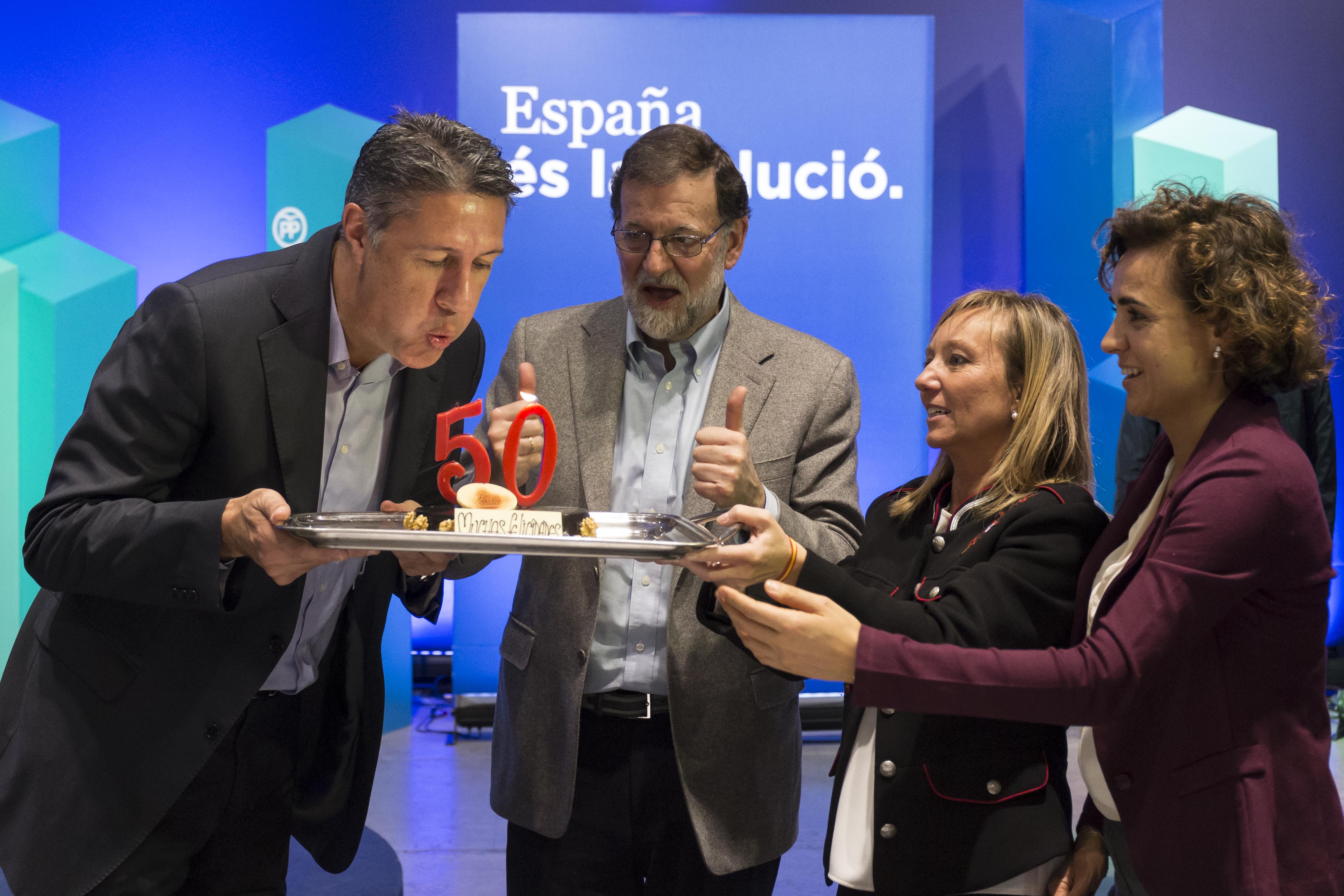 Durante el acto ha soplado la tarta conmemorativa de su 50º aniversario, dado que hoy es el cumpleaños de Xavier García Albiol.