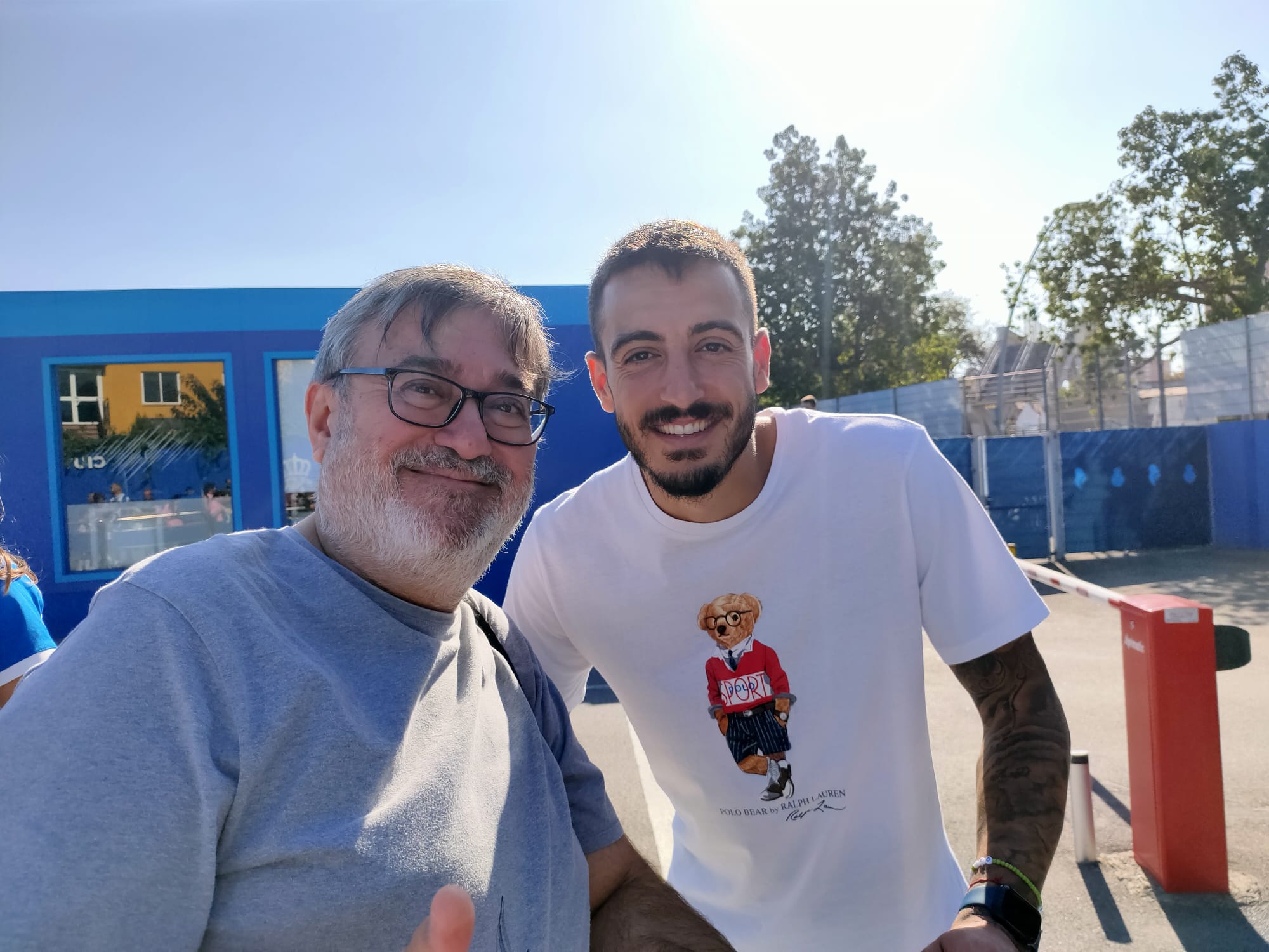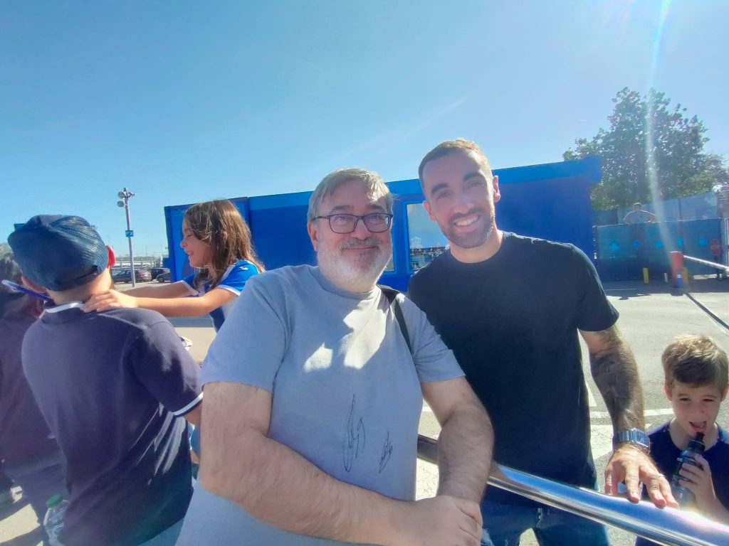 Como iba de acompañante, me dediqué a mi labor de apoyo y de ‘fotógrafo’, que no era yo el que tenía que acumular recuerdos en blanquiazul — en 35 años de socio, ya tengo unos cuántos –. Pero sí que me quise hacer dos fotos: con Darder, porque el ‘darderismo’ es lo más grande que ha parido el sentimiento blanquiazul en muchos años, y con Joselu, porque nos va dar muchas tardes de gloria.