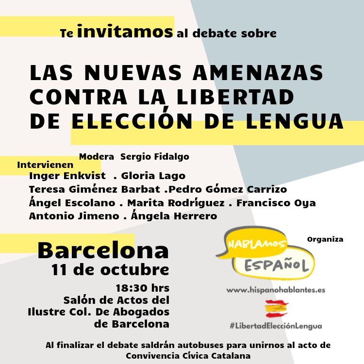 Su próxima acción tendrá lugar el viernes 11 de octubre en el Salón de Actos del Colegio de Abogados de Barcelona donde con presencia de las entidades que luchan contra la imposición de lengua, tendrá lugar lo que han definido como «un significativo y valiente debate».