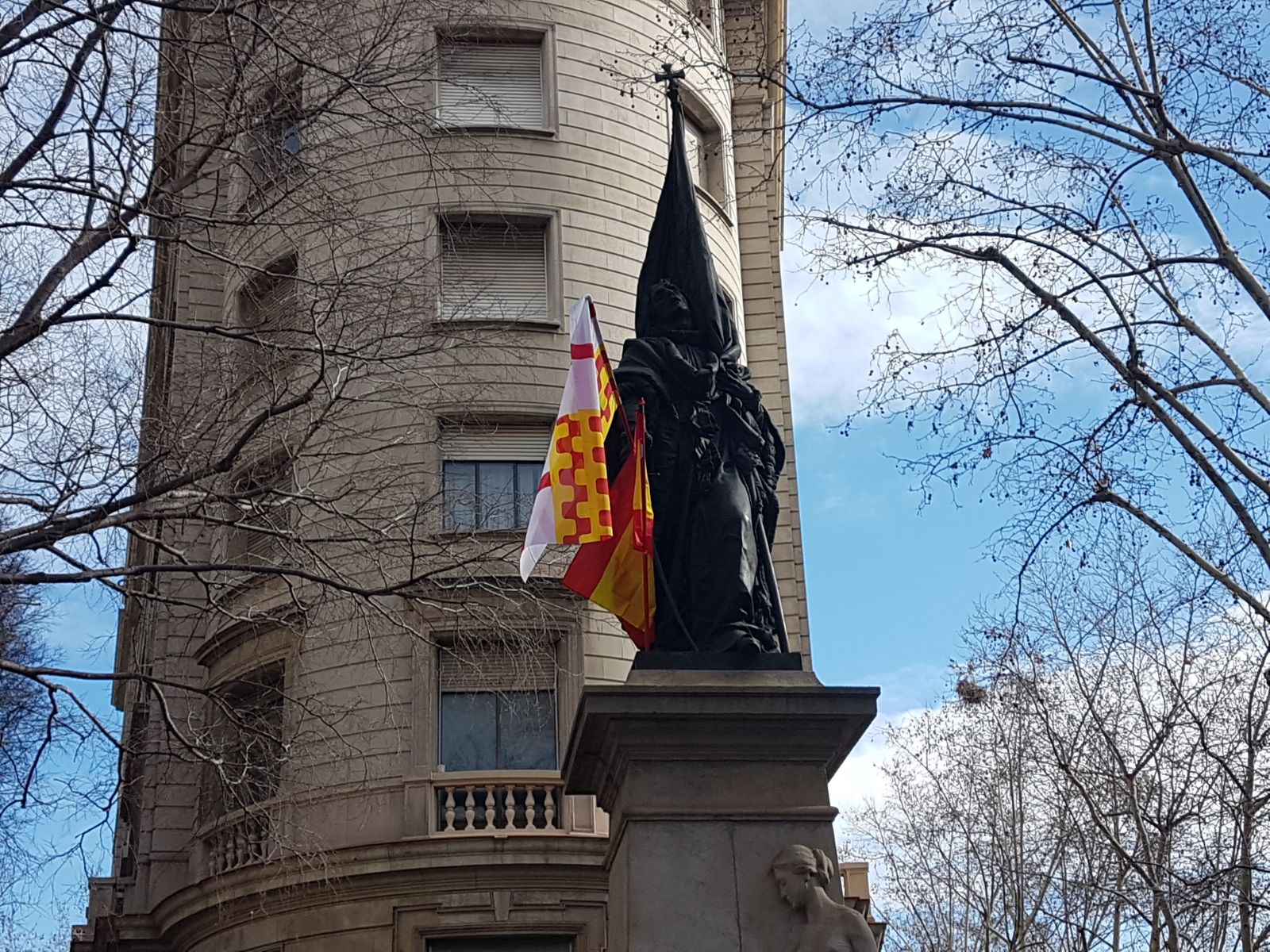 Los sones del Himno Nacional de España llenaron los alrededores del Monumento a Rafael Casanova, un «patriota español» reivindicado por la Plataforma por Tabarnia, la entidad organizadora de la manifestación del 4 de marzo en el centro de Barcelona. Una multitud lo coreó.