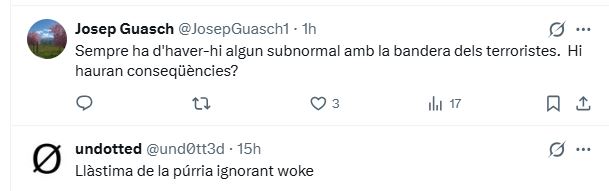 Otros han asegurado que «siempre tiene que haber algún subnormal con la bandera de los terroristas», «lástima de la purria ignorante woke» o «qué hacen estos idiotas reivindicando la libertad de un país musulmán que odia nuestras tradiciones y libertades».