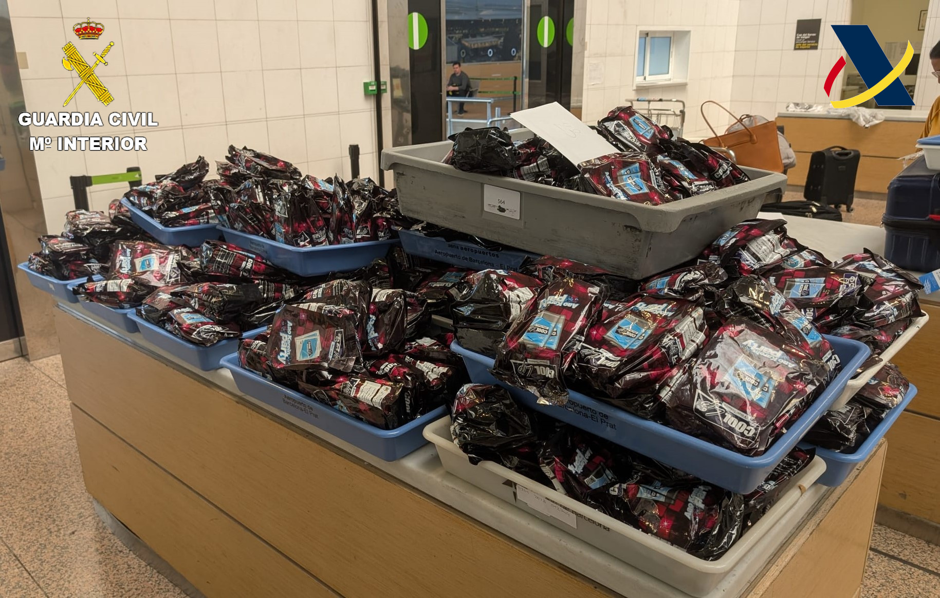 La Guardia Civil y la Agencia Tributaria intervinieron el pasado 17 de diciembre en el aeropuerto de Barcelona un cargamento de 28,72 kilogramos de tabaco de mascar. La mercancía decomisada por no haber sido declarada, fue encontrada dentro de dos maletas facturadas por un pasajero de 53 años y nacionalidad india que realizaba el trayecto DelhiKuwait-Barcelona.