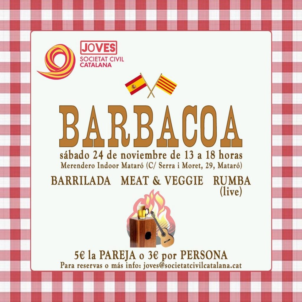 Los Joves de Societat Civil Catalana organizarán el 24 de noviembre, de 13:00 a 18:00 una barbacoa en la localidad barcelonesa de Mataró. Se servirá tanto carne como verduras, dado que también habrá comida vegana.