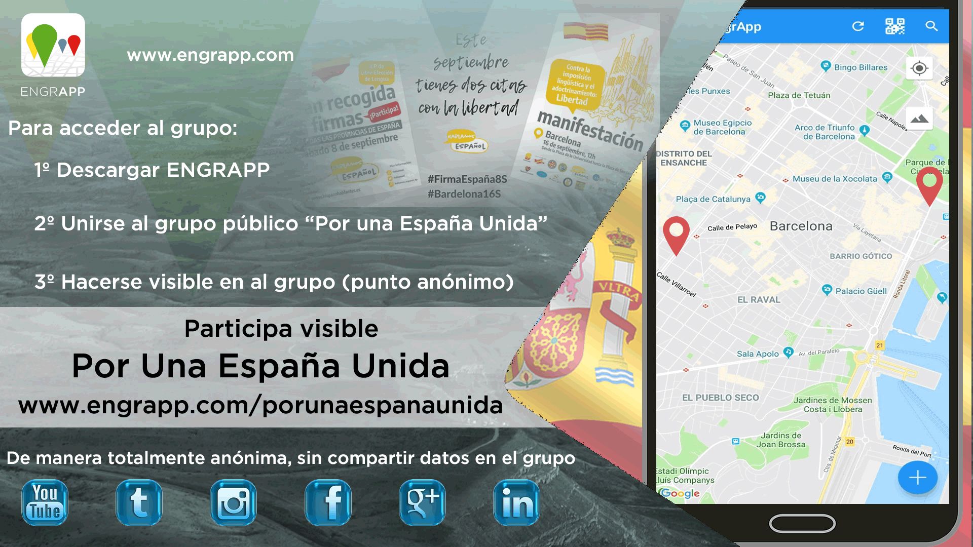 Hemos desarrollado una plataforma, EngrApp (aquí se puede descargar), a la que se accede a través de una App gratuita para el usuario. Una vez descargada, el usuario puede hacerse sus grupos particulares, con sus contactos, en los que además de chatear, puede compartir a voluntad su posición en tiempo real y marcar puntos de interés y compartirlos en esos grupos. Los usuarios pueden, además, adherirse a unos grupos especiales