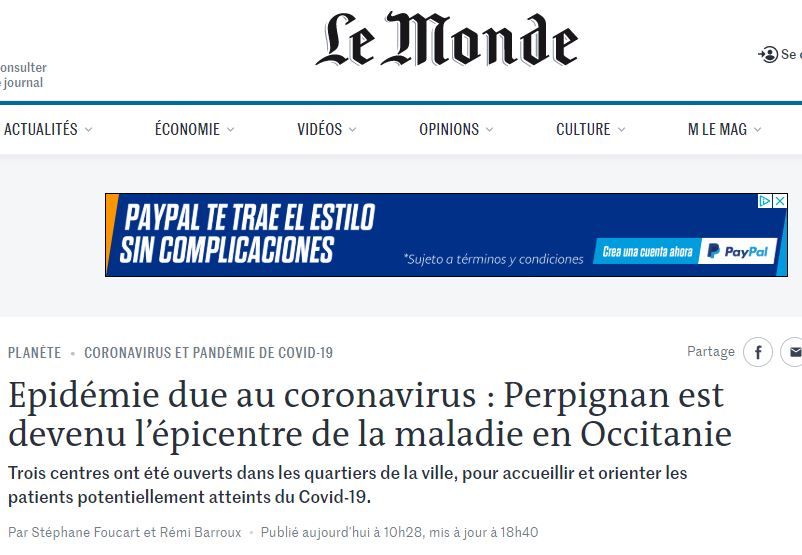 El prestigioso periódico ‘Le Monde’ ha definido a la ciudad en la que Carles celebró su multitudinario mitin, Perpiñán, como el «epicentro» de la epidemia de coronavirus en la región de Occitania, en el sur de Francia.