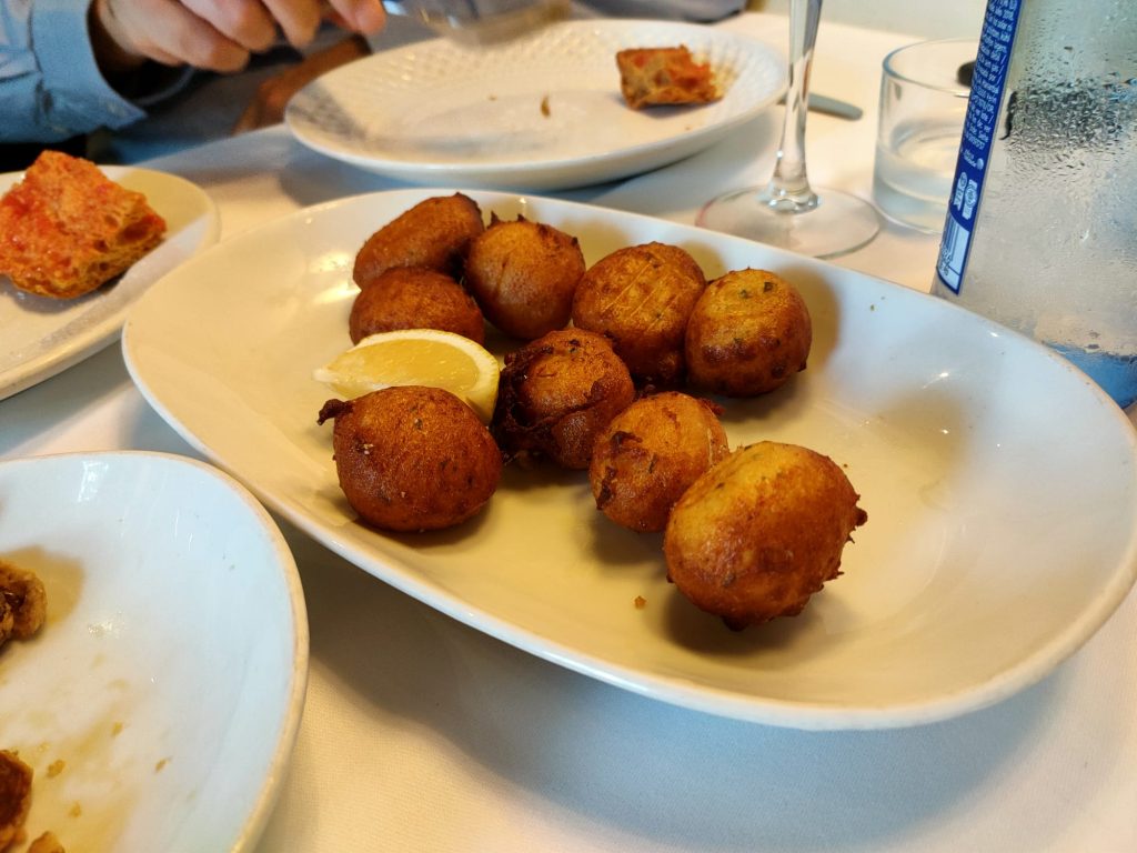 Situado justo detrás del Teatro Apolo, en la zona del Paralelo, cuenta con un servicio eficiente, una cocina solvente y una decoración clásica. Yendo a lo que importa, a mí me gustan, de entrante, sus calamares rebozados y sus buñuelos de bacalao. Los chips de alcachofa frita, aunque un poco aceitosos para mi gusto, reconozco que tienen mucho éxito con mis acompañantes.