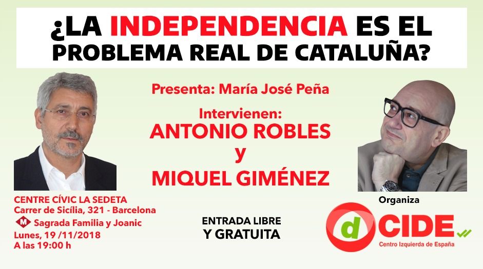 El próximo 19 de noviembre a las 19:00 el partido dCIDE organiza un coloquio con el siguiente tema: «¿La independencia es el problema real de Cataluña?».