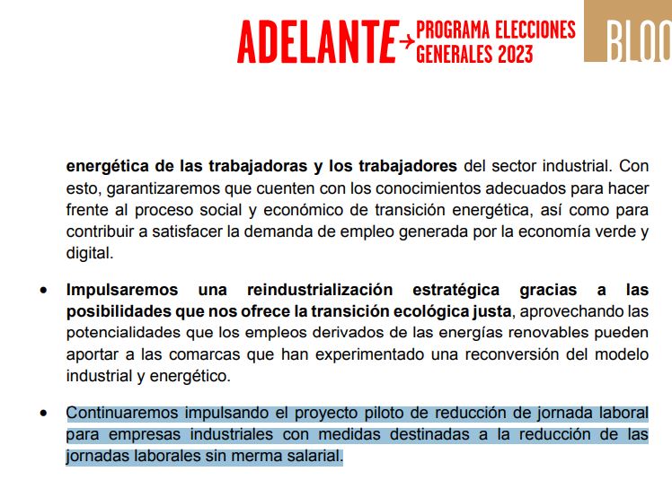 Volviendo al tema que nos ocupa: que este diario abra este pasado martes la sección de Política asegurando que la negociación entre PSOE y Sumar ha sido «dura» es un chiste muy malo. La medida estrella, la reducción de la jornada laboral, era algo que los mismos socialistas contemplaban en el programa electoral para las elecciones generales del pasado 23 de julio.