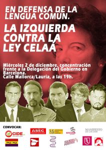 La concentración se llevará a cabo bajo el lema «En Defensa de la lengua común. La izquierda contra la ley Celaá«. Los convocantes son dCIDE, Tabarnia Libre, ASEC, Convivencia Cívica Catalana, Somos España, Manifiesto de los 2300, Líneas Rojas, Izquierda en Positivo, Partido Feminista de España, Partido Socialista del Trabajo y Alternativa Ciudadana Progresista.