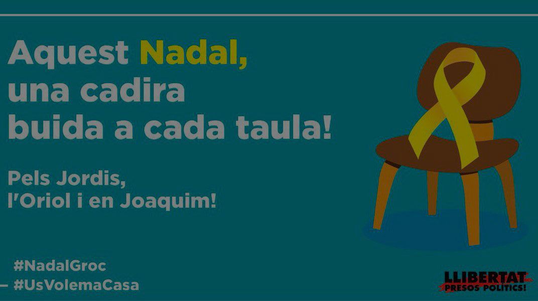 La ANC y Òmnium Cultral han invitado a sus seguidores a dejar en las comidas familiares de estas fiestas una silla vacía con un lazo amarillo, para “recordar a las cuatro familias que han de dejar una silla vacía a la fuerza, por la persecución política”, en referencia a Oriol Junqueras, Joaquim Forn, Jordi Sánchez y Jordi Cuixart, en prisión preventiva por diversos presuntos delitos de gran gravedad.