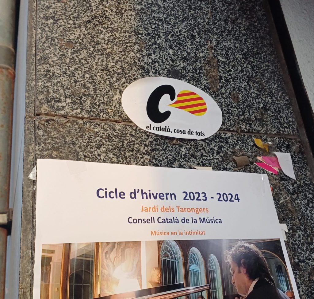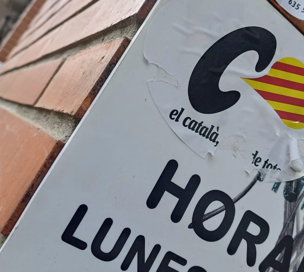 En las últimas semanas centenares de comercios de la ciudad de Barcelona que usan el español en su rotulación ha sido ‘señalados’ por radicales separatistas con la pegatina «el català, cosa de tots». Este adhesivo reproduce el lema que la Generalitat comandada por Jordi Pujol usó en los años 80’s del siglo pasado para extender el uso social de catalán.