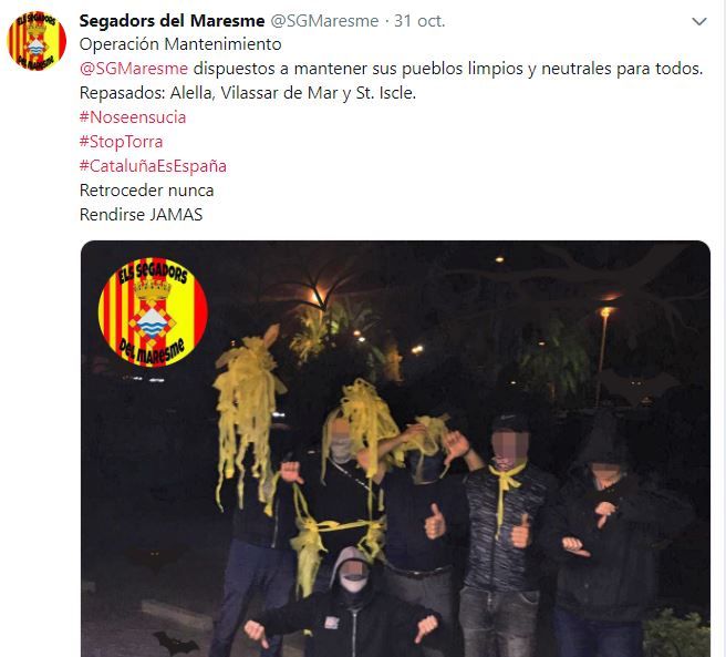 En redes sociales han informado que el objetivo de esta «operación» es «mantener sus pueblos limpios y neutrales para todos. Repasados: Alella, Vilassar de Mar y St. Iscle».