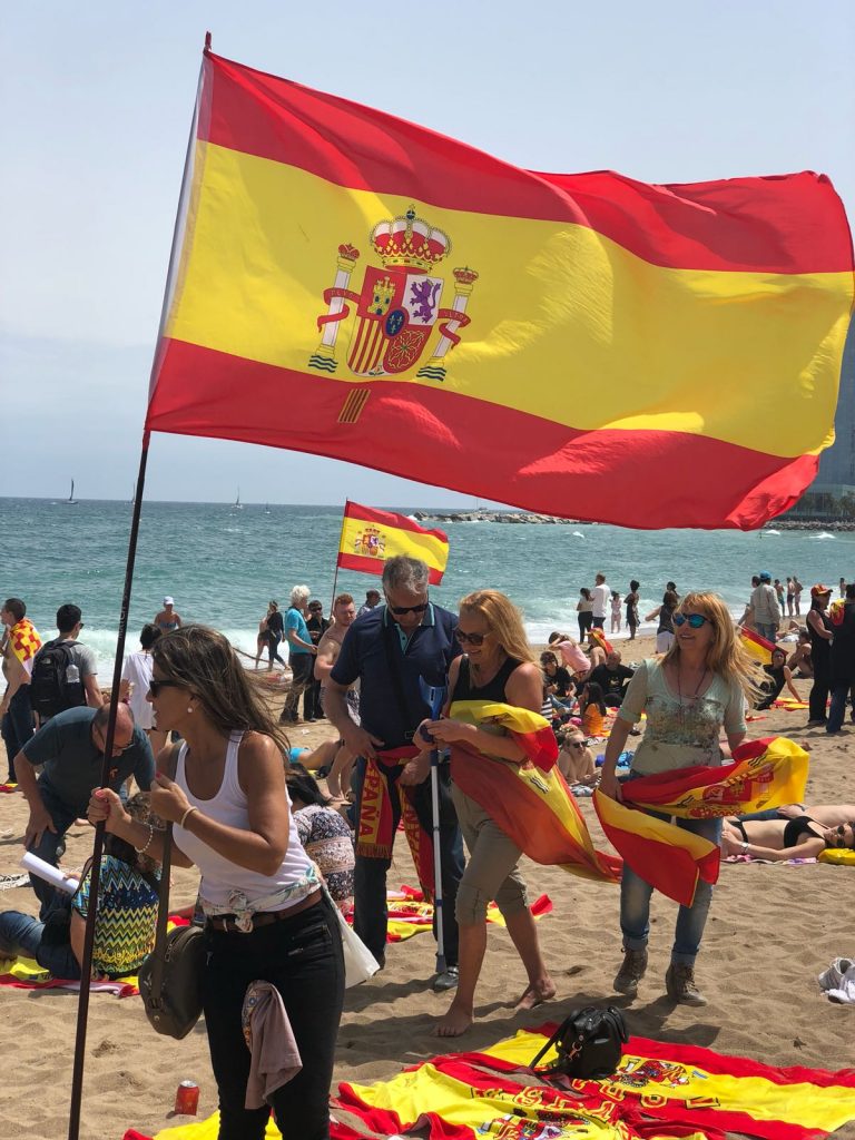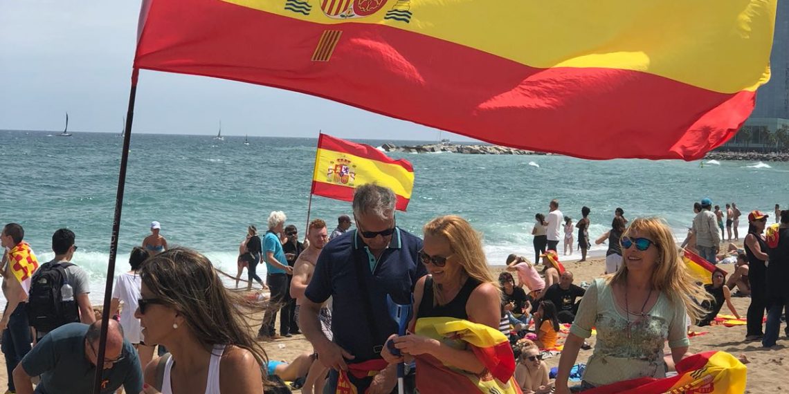 Un buen número de ciudadanos han decidido, ante la provocación secesionista de llenar las playas de cruces amarillas, llevar banderas y toallas rojigualdas a la barcelonesa playa de la Barceloneta.