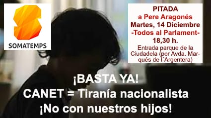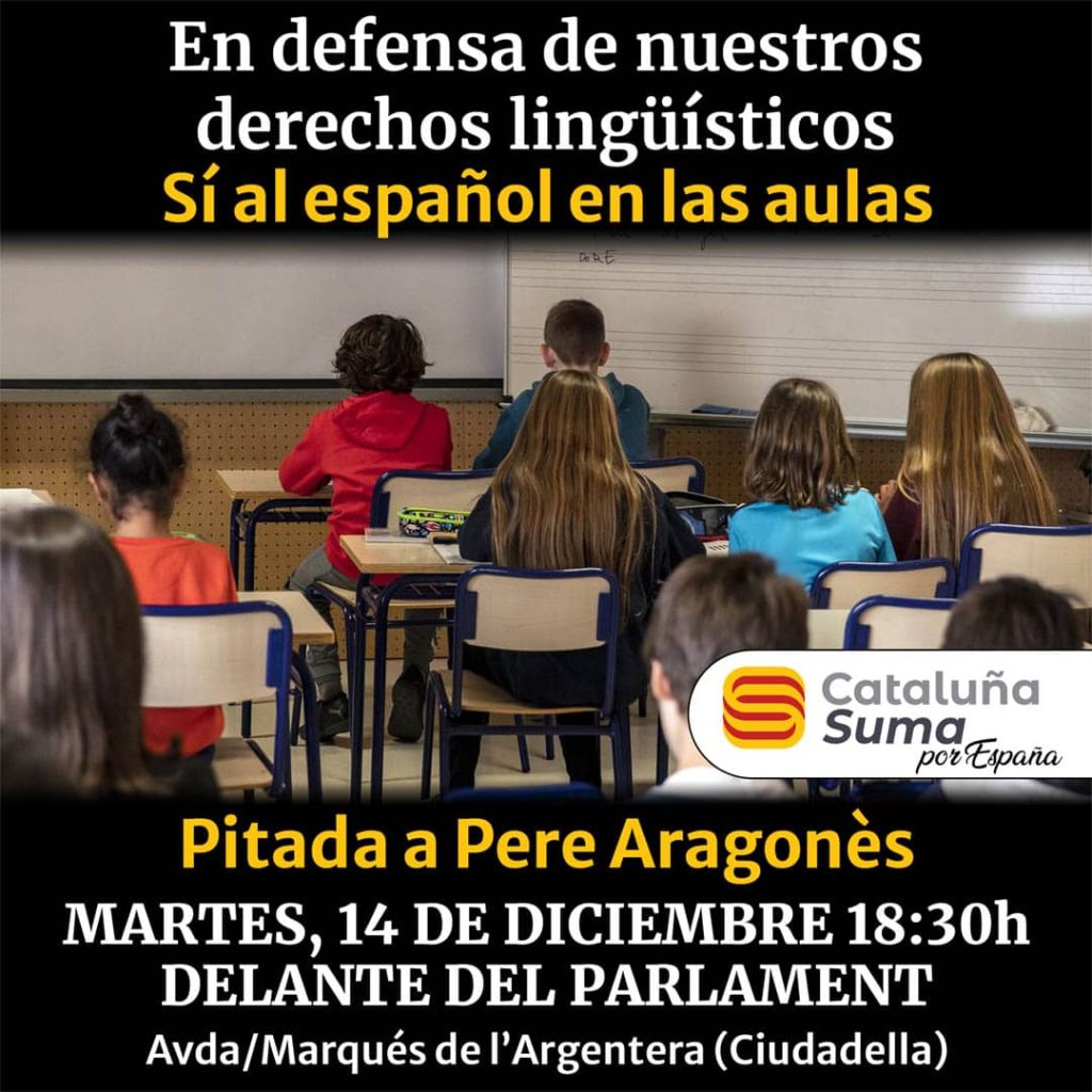 Diversas entidades cívicas y VOX han convocado para el próximo martes 14 de diciembre, a las 18:30, una pitada a Pere Aragonès con el lema «defendamos la educación de nuestros hijos». Será en los aledaños del Parlament, en la confluencia de la Avenida Marqués de la Argentera con el Paseo Picasso., en una de las entradas al parque de la Ciudadela.