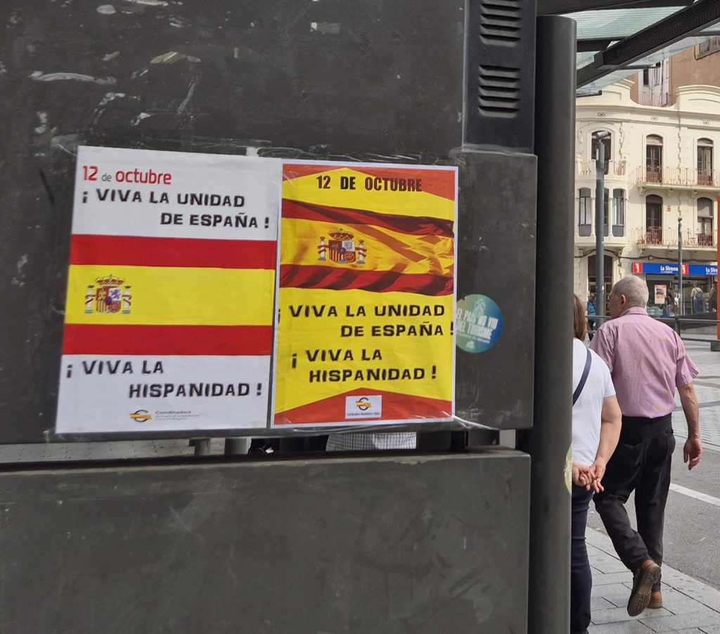 Con motivo de la celebración del 12 de octubre, durante los últimos días, hasta cuatro “brigadillas” de la “Coordinadora de grupos de la Resistencia Cívica de Tarragona» han llevado a cabo un buen número de acciones en diversas poblaciones de la provincia de Tarragona (Tarragona, Reus, Vilaseca-La Pineda, Salou, Cambrils, La Canonja …); consistentes en la pegada de 150 carteles y diversas pancartas. Aunque el sábado por la tarde quedaban aproximadamente en pie solo un 15 % de los carteles y pancartas colocados. Son varias las generaciones que han crecido en Cataluña adoctrinadas en el odio a España y a la Hispanidad. Con todo esto y con separatistas e izquierdistas, tenemos que bregar.