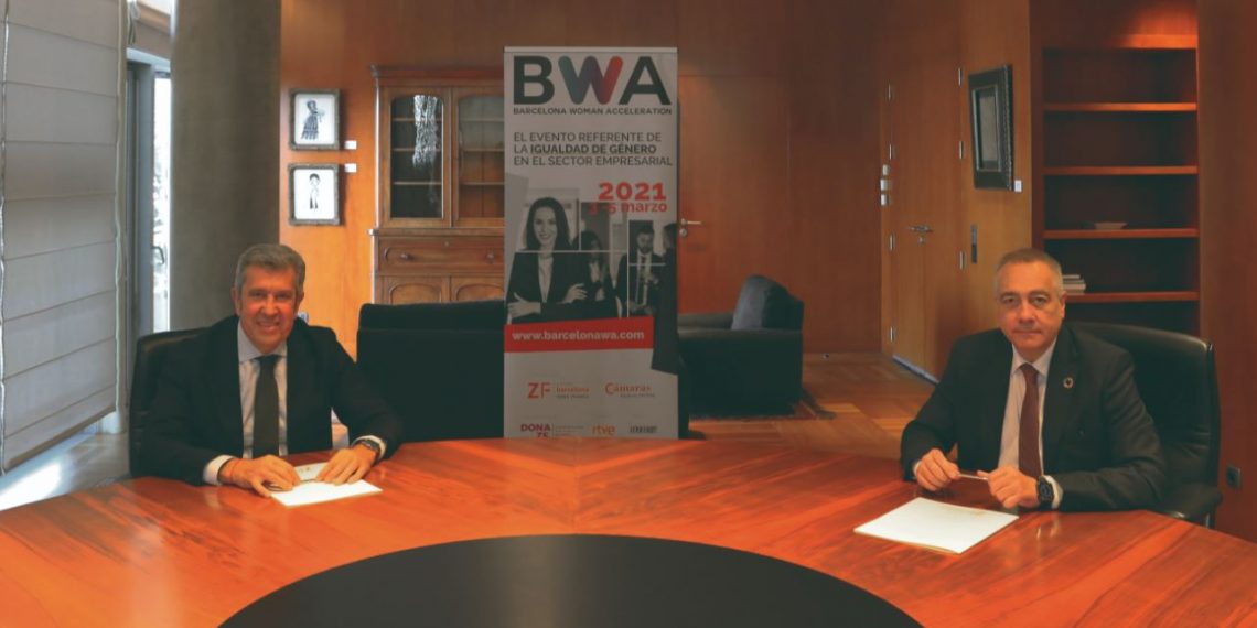 El Consorci de la Zona Franca de Barcelona (CZFB) y la Fundación Incyde de las Cámaras de Comercio españolas se han aliado para crear el Barcelona Woman Acceleration (BWA), un evento digital cuyo objetivo es acelerar y dinamizar la igualdad de género para ayudar a conseguir la participación plena y la igualdad de oportunidades de la mujer en el sector industrial a nivel local y global. Pere Navarro, delegado especial del Estado en el CZFB, y Javier Collado, director general de la Fundación Incyde, han sido los encargados de firmar el acuerdo de colaboración que permitirá llevar a cabo el evento los próximos 3, 4 y 5 de marzo, en el contexto del Día Internacional de la Mujer (8 de marzo), en los platós de RTVE en Sant Cugat del Vallès.