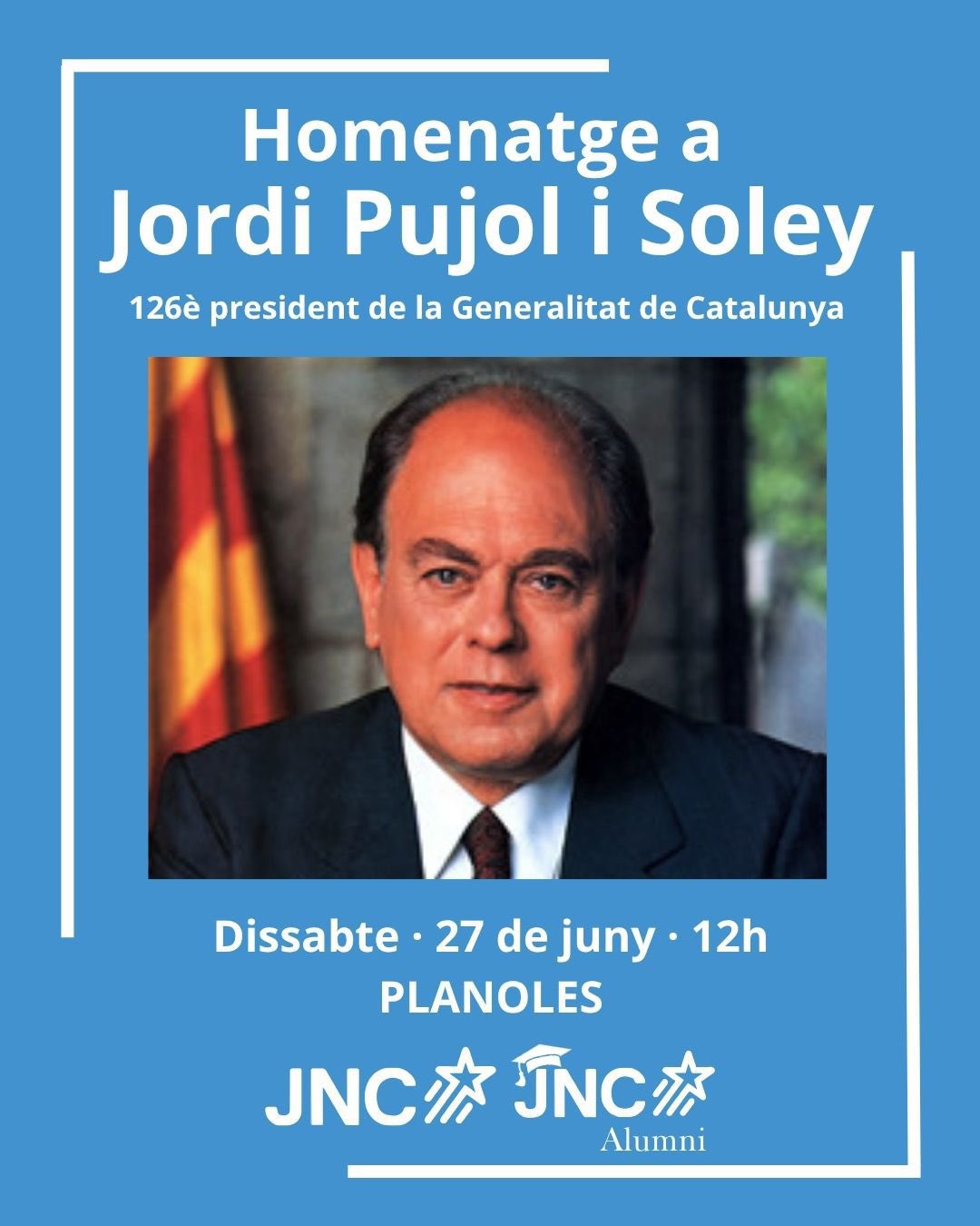 🎤 L’acte és organitzat per la @jncatalunya i la @jncalumni i comptarà amb la presència del President Pujol. Tindrà una part política i un dinar popular.