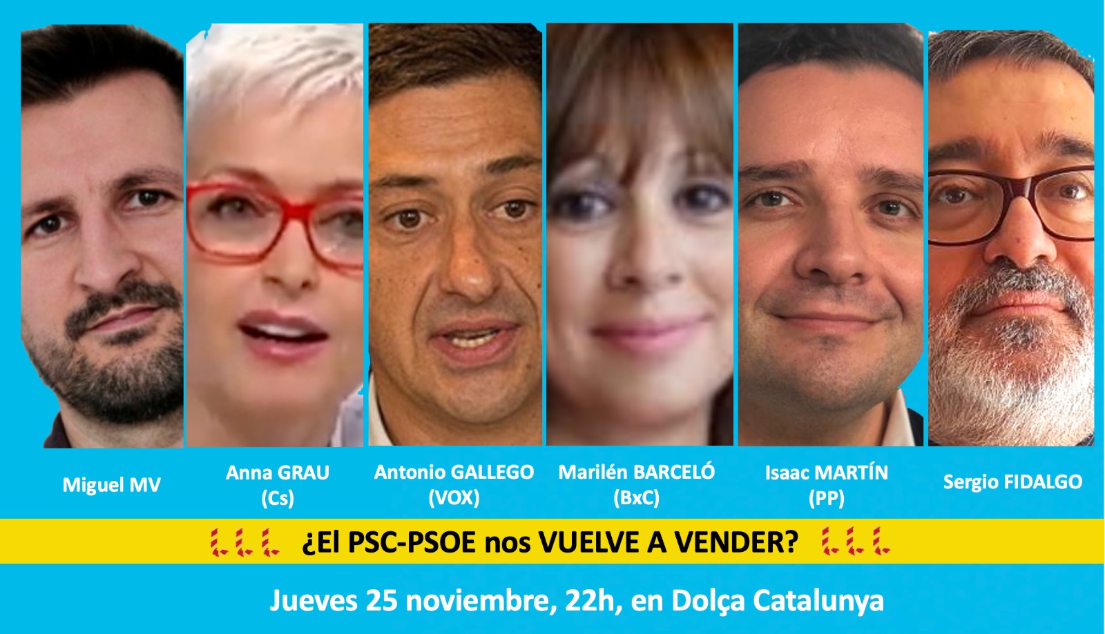 La tertulia vía streaming ‘L’Hora Dolça’, de Dolça Catalunya, emitirá este jueves 25 de noviembre a partir de las 22:00 la charla dedicada a «¿El PSC-PSOE nos vuelve a vender?».