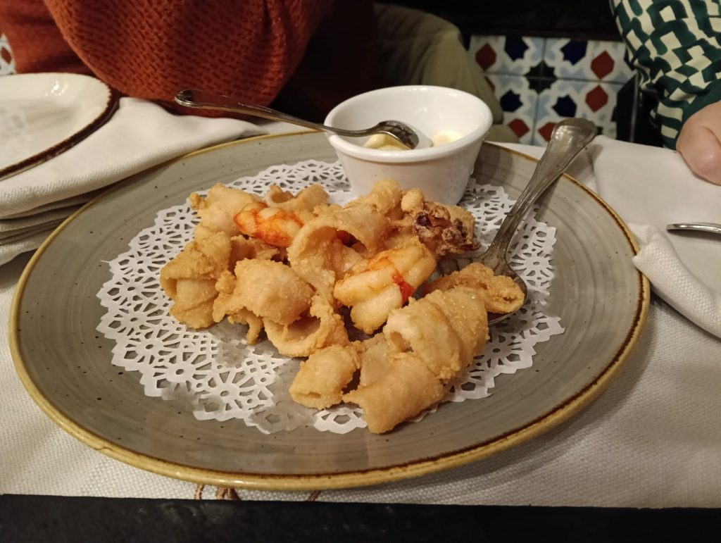 La fritura a la andaluza – gambas y calamares – es espectacular, rica y sabrosa. El rabo de toro deshuesado con parmentier de patata, también. Así como la butifarra a la brasa o los pies de cerdo con caracoles. En mi última visita no probé los arroces, pero de mis sesiones gastronómicas anteriores siempre los pedí, y nunca me fallaron.