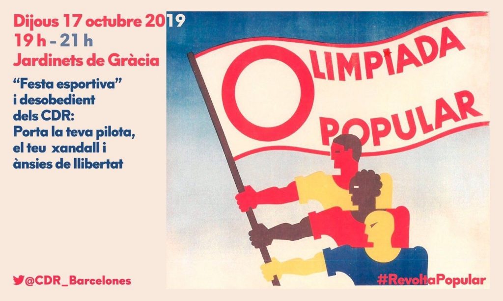 Se avecina otra noche movida en Barcelona, los CDR han convocado una manifestación en los Jardinets de Gracia, animan a sus «fieles» a asistir con pelotas y chándal.