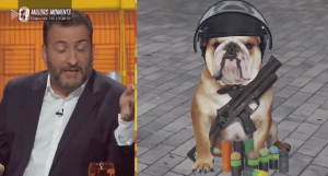 Cabe recordar lo sucedido: dos días después de que se notificara la sentencia del proceso separatista, el programa de los tres ‘graciosos’ emitió un vídeo donde se veía a un perro con un casco antidisturbios de los Mossos y una pistola de foam, entre varios insultos a los «perros», los ‘graciosos’ del programa criticaban que, en vez de protegerte, un perro «te ladra, te muerde o todavía peor, te dispara balas de foam o pelotas de goma«.