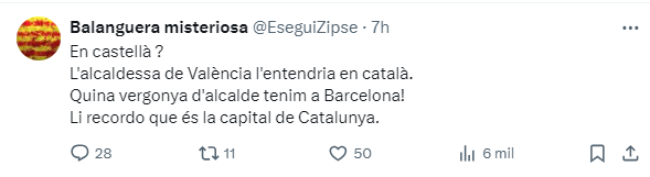 Resulta cuanto menos curioso, ya que Collboni desprecia al español de forma continuada en la capital catalana, pero esto no les sirve a los secesionistas. Resulta lamentable, y define a la perfección a los ‘hooligans’ del idioma regional que ante una tragedia de tal magnitud lo único que les preocupa es el idioma en el que se habla. Retratados, una vez más.