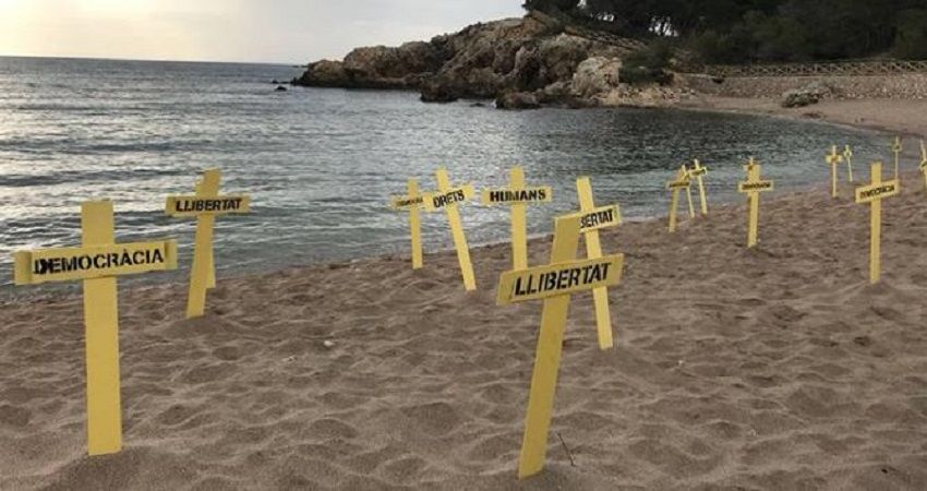 El objetivo es que las cruces recorran el litoral de la Costa Brava y secuestrar todas las playas para según ellos visualizar la pérdida de libertades en Cataluña.