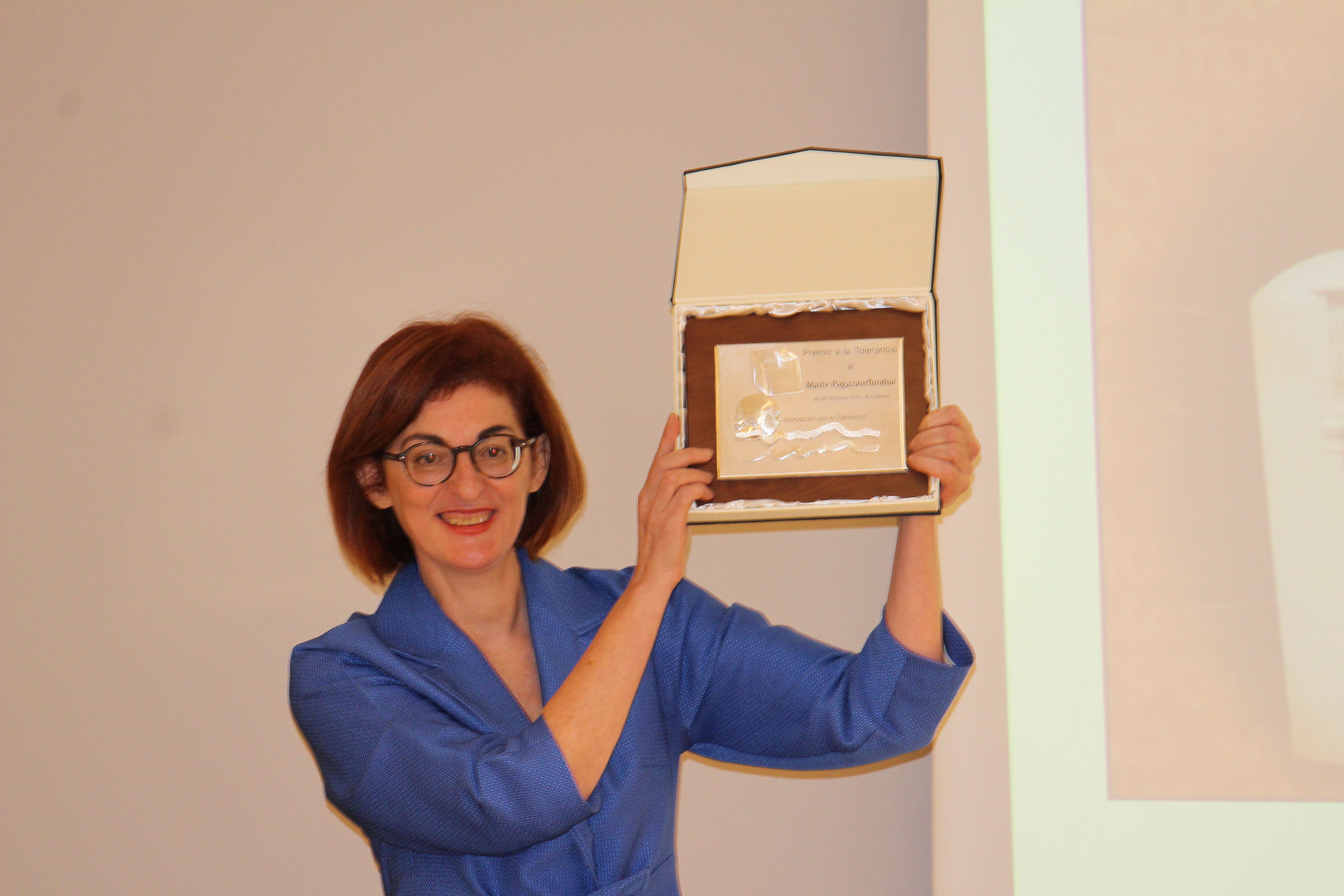 La eurodiputada de ALDE Maite Pagazaurtundua Ruíz recibió el pasado viernes el XXIV Premio a la Tolerancia en un ambiente cálido y acogedor ante casi dos centenares de personas.