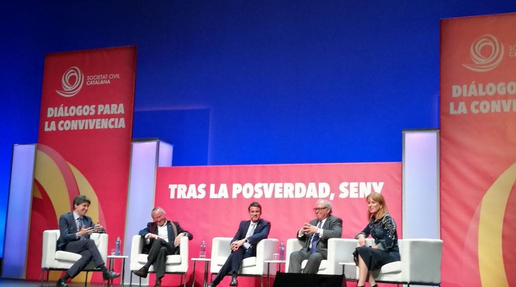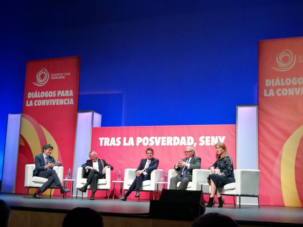 Societat Civil Catalana ha organizado este sábado, en el Palacio de Congresos de Cataluña, el acto ‘Diálogos para la convivencia: tras la “posverdad”, seny’, que ha contado con la participación del ex Primer Ministro de Francia, Manuel Valls; los ex ministros Josep Piqué y Eduardo Serra; el presidente de la entidad organizadora, José Rosiñol, y la periodista Gloria Lomana.