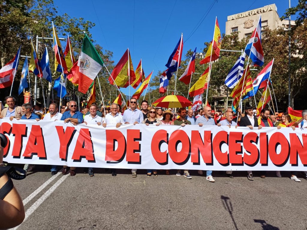 La jornada de los actos del 12 de octubre en la capital catalana se cerró con la tradicional misa en honor a la Virgen del Pilar. Fue organizada por Convivencia Cívica Catalana y tuvo lugar en la parroquia de Nuestra Señora de los Ángeles (Balmes, 78).