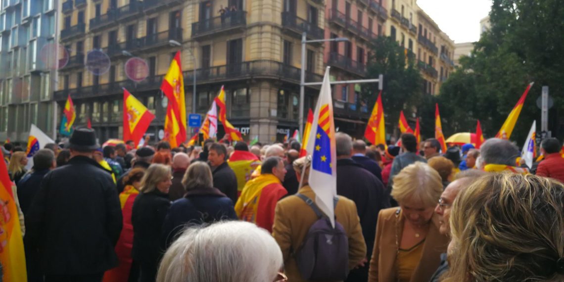 Miles de personas se han manifestado en el centro de Barcelona en defensa de la Constitución, convocadas por Espanya i Catalans y Cataluña Suma, con el apoyo de decenas de entidades cívicas.