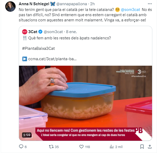 Un nuevo ejemplo lo tenemos con una intervención en castellano de dos minutos en TV3, ante la cual los secesionistas han montado en cólera, cuando debería ser lo normal, una sociedad bilingüe, unos medios de comunicación bilingües.