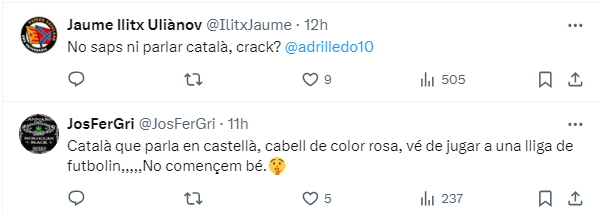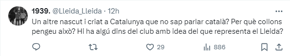 El último ejemplo lo tenemos con el fichaje de un futbolista por el Lleida Esportiu, club que milita en la Segunda Federación. Más concretamente hablamos de Adrián Lledó, quien reforzará la plantilla del conjunto ilerdense de cara a la próxima temporada. El futbolista de 27 años es natural de Sant Fost de Campsentelles (Barcelona) y en su presentación ha hablado en castellano, lo que le ha costado una intensa lluvia de críticas.