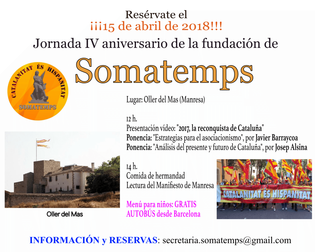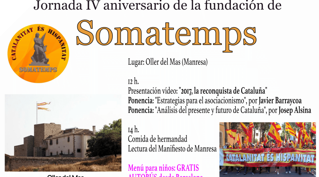 Somatemps ha asegurado a elCatalán.es que «en la Cataluña del 155 el aparato propagandístico de la mafia separatista sigue intocable, y los catalanes leales a España seguimos siendo ciudadanos de segunda. Buscaremos otro lugar para la celebración y en breve lo haremos público».
