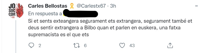 «No sé catalán y tengo un profesor que me habla en inglés por no hablarme en español. Bilbaína pero extranjera en Cataluña», ha denunciado esta estudiante para mostrar la situación que viven algunos estudiantes en las universidades catalanas.