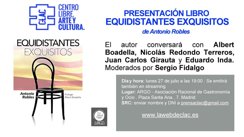 En la sala estarán Juan Carlos Girauta, Eduardo Inda, Nicolás Redondo Terreros, Sergio Fidalgo y Antonio Robles. Albert Boadella lo estará de manera telemática. Los interesados en acudir, bien sea de manera presencial o telemática han de enviar un mail a prensaclac@gmail.com. El libro se puede adquirir en este enlace de Amazon.