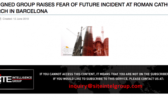 SITE Intelligence Group se dedica desde 2002 a vigilar en internet la actividad de organizaciones terroristas yihadistas y supremacistas blancas. La alerta sobre la Sagrada Familia la han difundido este miércoles, 9 de junio.