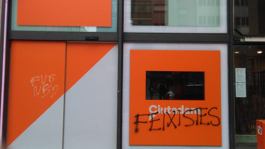 El secretario de organización de Ciudadanos (Cs) en Cataluña y presidente del grupo parlamentario, Carlos Carrizosa, ha denunciado un nuevo ataque con pintadas esta madrugada en la sede del partido en Barcelona.