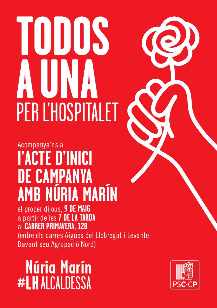 La actual alcaldesa de L’Hospitalet de Llobregat, Núria Marín (PSC), comenzará su campaña electoral para la reelección con el lema «Todos a una per L’Hospitalet».