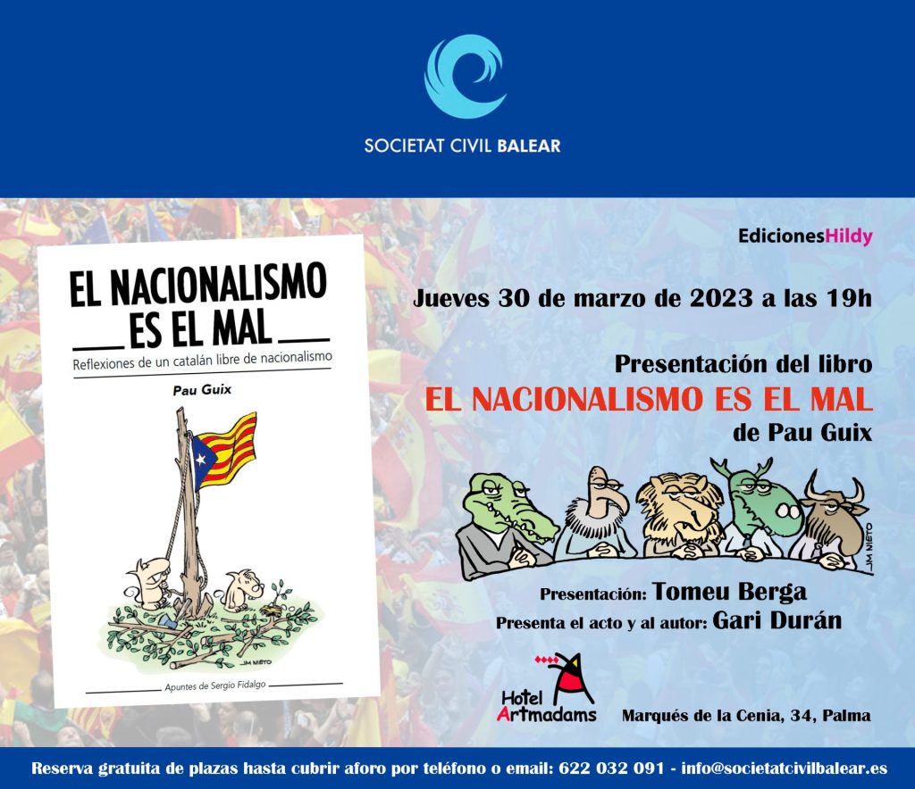 El dramaturgo y ensayista Pau Guix presentará su último libro, ‘El nacionalismo es el mal’ (Ediciones Hildy) en Mallorca el próximo 30 de marzo, a las 19:00, en Palma, en el Hotel Artmadams (Marqués de la Cenia, 34). Tomeu Berga y Gari Durán arroparán al autor. Organiza Societat Civil Balear (foto: Cristina Casanova).