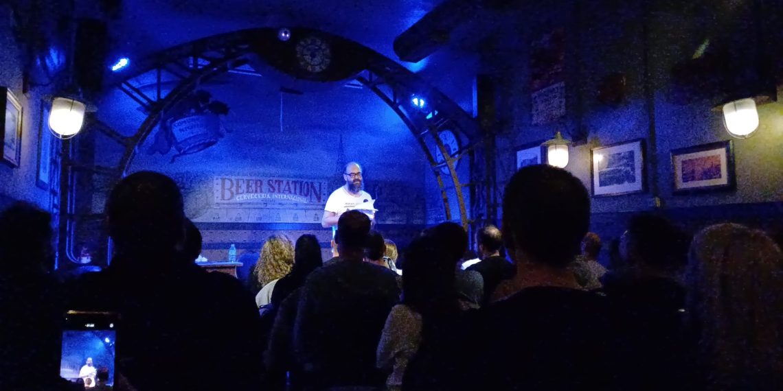 En mi reciente viaje por Madrid decidí ver si Farray seguía como siempre, y así es, pero delante mío había una pareja más interesada en sus preliminares – no dudo que hubo ‘fiesta’ al acabar el show, viendo la dedicación de ambos – que a escuchar lo que el cómico canario proponía sobre la tarima, su habitual ejercicio de provocación que le ha hecho popular dentro de la escena humorística nacional. Pensaba que no había ‘fila de los mancos’ en el ‘Beer Station’ pero igual debería instalarse, y subastar sus butacas.