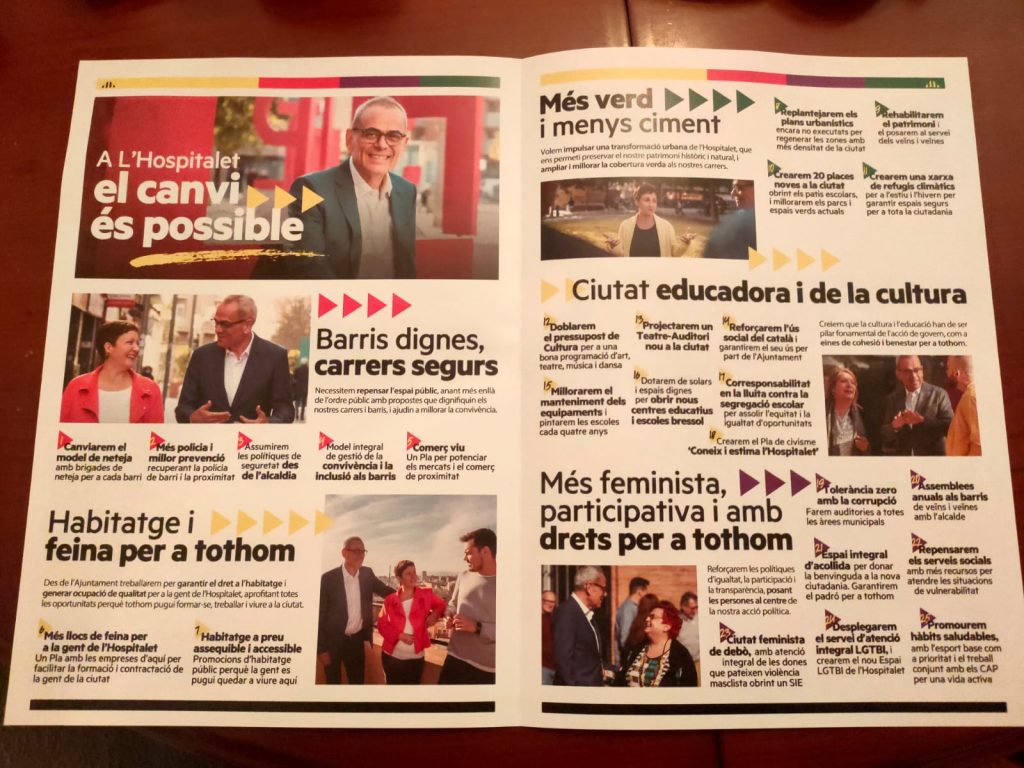 «Cambiaremos el modelo de limpieza» «más policía y mejor prevención», «más puestos de trabajo para la gente de L’Hospitalet», «crearemos una red de refugios climáticos», o «desplegaremos el servicio de atención integral LGTBI» son algunas de las medidas que propone Graells. También apuesta por «reforzar el uso social del catalán y garantizaremos su uso por parte del Ayuntamiento». Nada sobre la «República catalana», la lucha contra la «represión del Estado» o cualquiera de los mantras que ERC usa en las comarcas catalanas más independentistas.