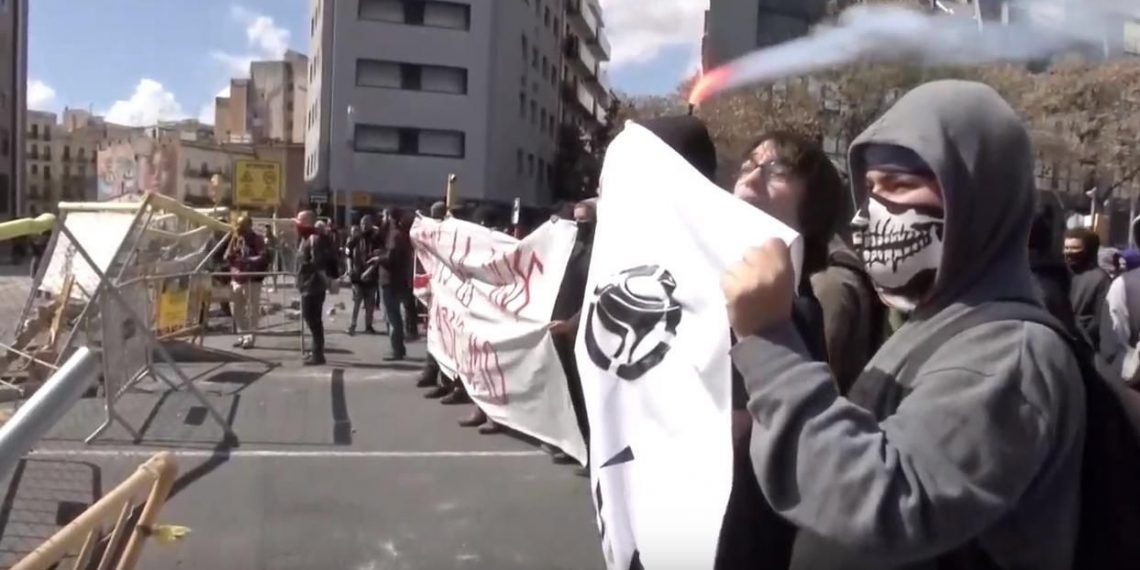 El motivo era tratar de reventar el acto de VOX en el la Avenida María Cristina de la capital catalana. Durante primera hora de la mañana del sábado se produjeron incidentes en los alrededores lugar del acto de la formación de Santiago Abascal.
